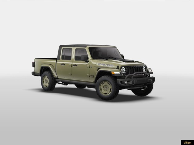 - QUICK ORDER PACKAGE 24T WILLYS 41 -inc: 3.6L V6 24V VVT UPG I Engine w/ESS 8-Speed Automatic 850RE Transmission LED Taillamps Protection Sill Rails Willys '41 Retro Edition Gladiator Decal MOPAR Black Hood Graphic 4WD Willys '41 Tailgate Decal Willys '41 Body Color Fender Flares (2-Piece) Front Heavy Duty Red Accent Shock Absorbers Daytime Running Lamps LED Accents Front LED Fog Lamps LED Premium Reflector Headlamps E-Locker Rear Axle Green Soul Cloth Wrapped Mid-Bolster Corning Gorilla Glass Trailer Hitch Zoom Class IV Receiver Hitch Security Alarm Performance Hood Steel Front Bumper Advanced Brake Assist Heavy Duty Engine Cooling Automatic Headlamps Air Conditioning w/Auto Temp Control Deep Tint Sunscreen Windows MOPAR Triple Hoop Grille Guard Off-Road Plus Mode Central ADAS Decision Module (CADM) Willys '41 US Edition U.S Hood Decal Full Speed Forward Collision Warning Plus Rear Heavy Duty Red Accent Shock Absorbers Front Door Locks 2-Door Passive E