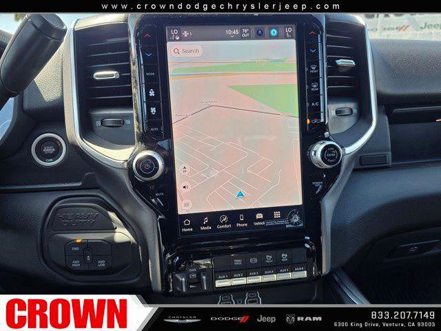 - BIG HORN LEVEL 1 PLUS EQUIPMENT GROUP -inc: Emergency Vehicle Alert System (EVAS) 12 Touchscreen Display Glove Box Lamp Auto Power-Folding Mirrors Footwell Courtesy Lamp Anti-Spin Differential Rear Axle MOPAR Deployable Bed Step Alexa Built-In Forward & Reverse Utility Lights Locking Lower Glove Box Remote Start System 9 Alpine Speakers w/Subwoofer Disassociated Touchscreen Display Dual Glove Boxes 2nd Row In Floor Storage Bins Rear View Auto Dim Mirror Rear Dome w/On/Off Switch Lamp LED Bed Lighting GPS Navigation SiriusXM w/360L Connected Travel & Traffic Services Foam Bottle Insert (Door Trim Panel) Big Horn IP Badge Off-Road Info Pages Trailer Tow Pages HD Radio Radio: Uconnect 5 Nav w/12.0 Display Power Heated Folding Telescopic Mirrors Steering Wheel Mounted Audio Controls Air Conditioning ATC w/Dual Zone Control MOPAR Spray In Bedliner Luxury Steering Wheel Power Telescoping Mirrors